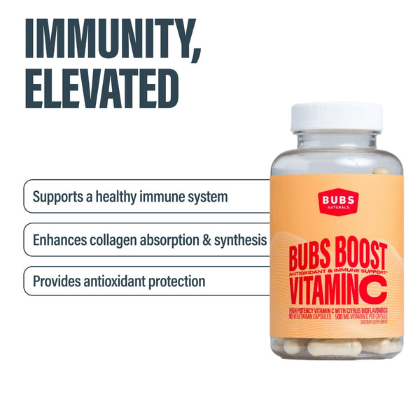 It’s also essential for collagen synthesis—without it, your body can’t properly build or stabilize collagen. Pair with BUBS Collagen for stronger joints, skin, and connective tissue. Whether you’re training hard or staying sharp, BUBS BOOST Vitamin C+ has your back.